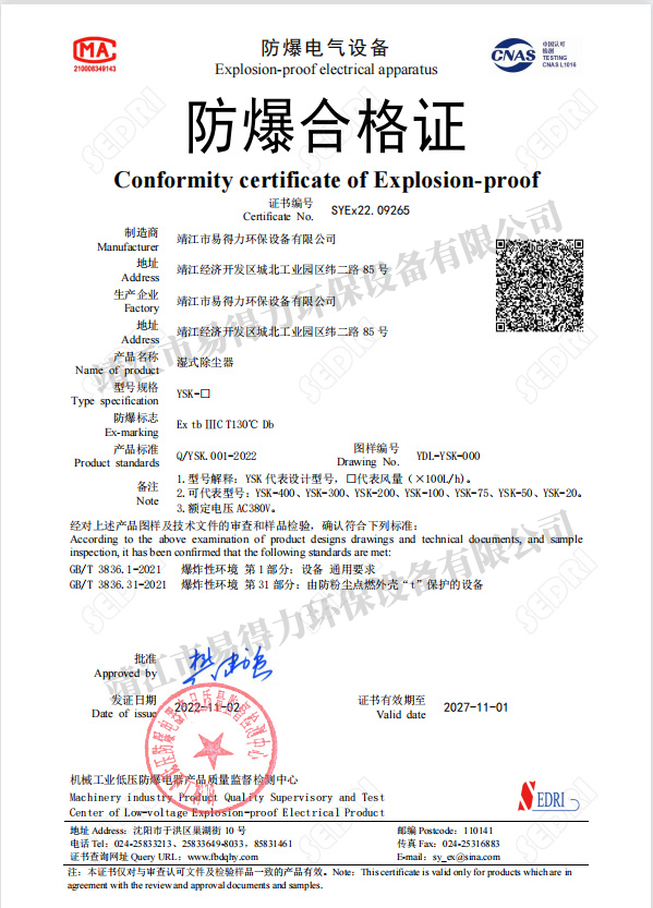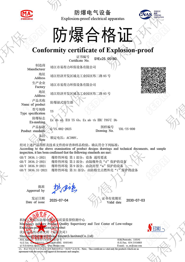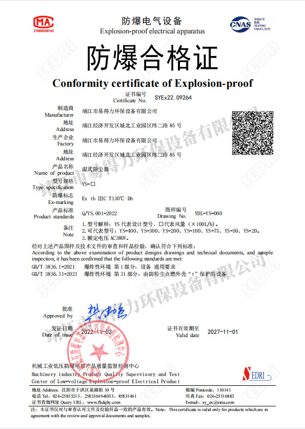 YS茶葉產(chǎn)線(xiàn)防爆濕式除塵器